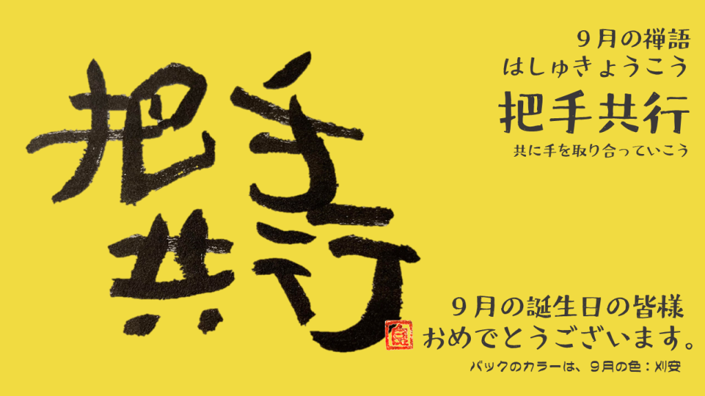 9月の誕生日の禅語 「把手共行(はしゅきょうこう)」