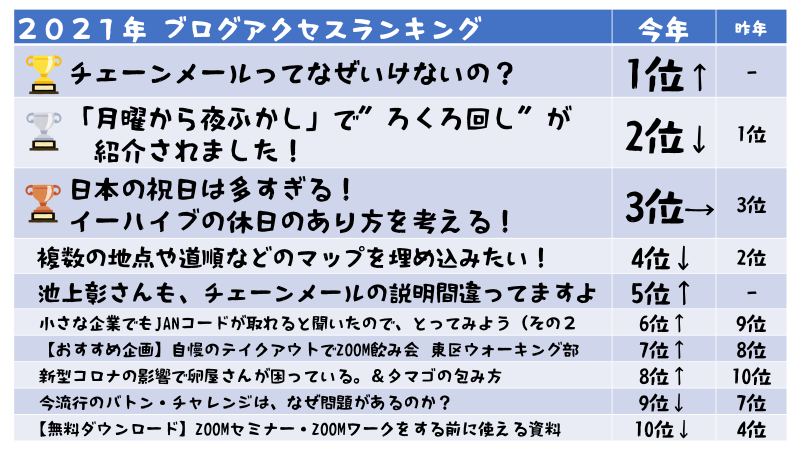 2021年は、ランキング表にしました。