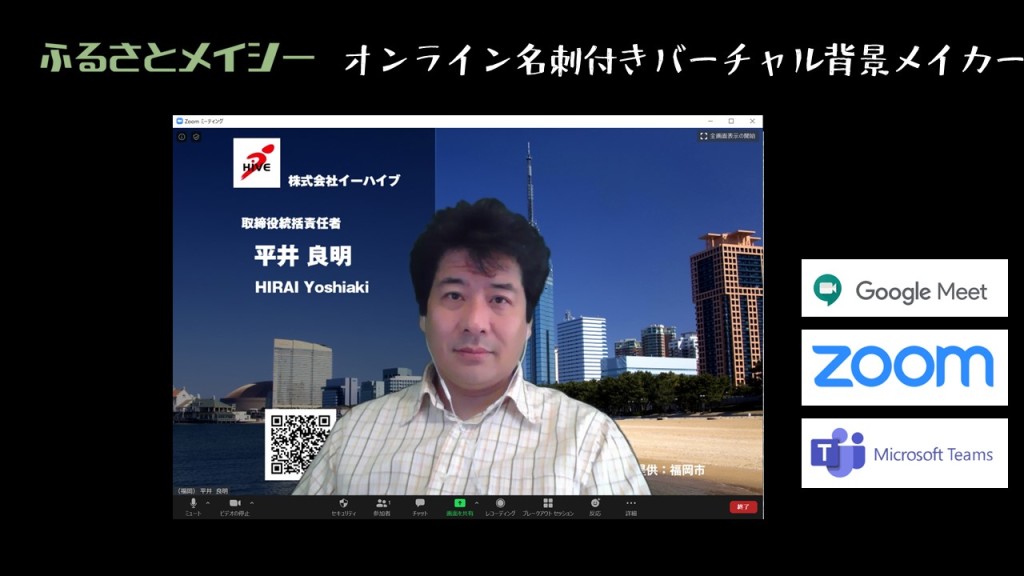 新型コロナ対策新しい生活様式 地域応援オンライン名刺付きバーチャル背景メイカー