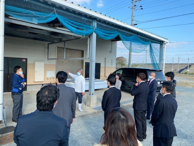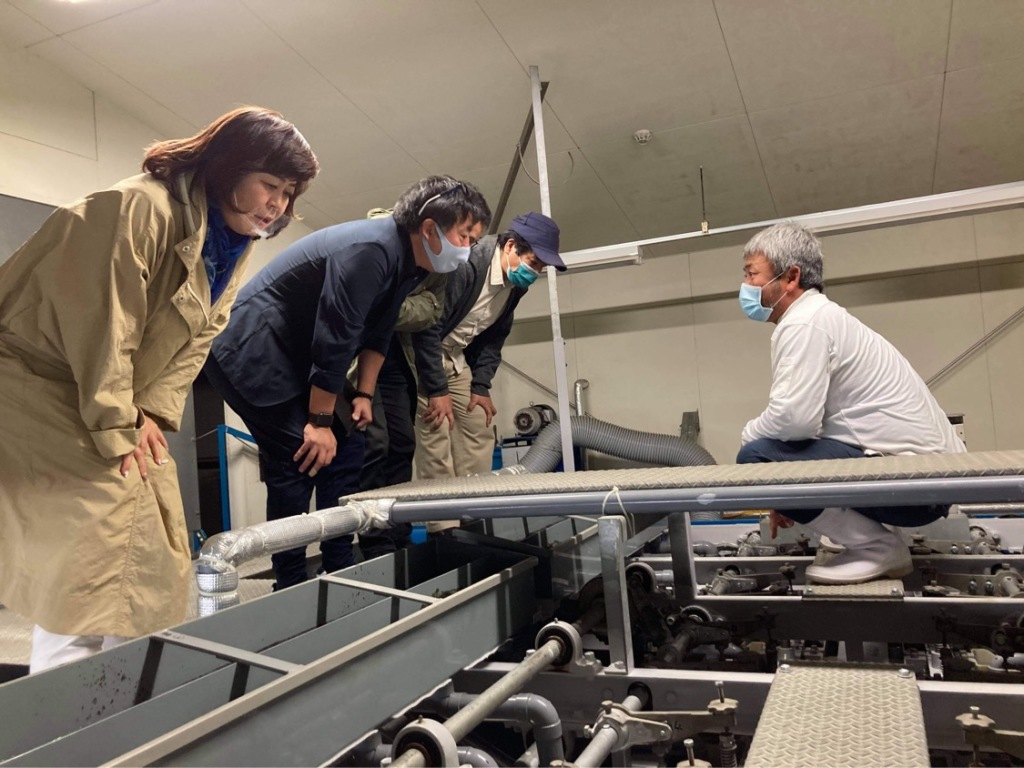 つづいて、大正3年創業の(株)オーツボ様を訪問。板海苔の生産機械を制作されていて、その説明を聞いた上で実際に地元産業の海苔の生産行程現場を視察させて頂きました。