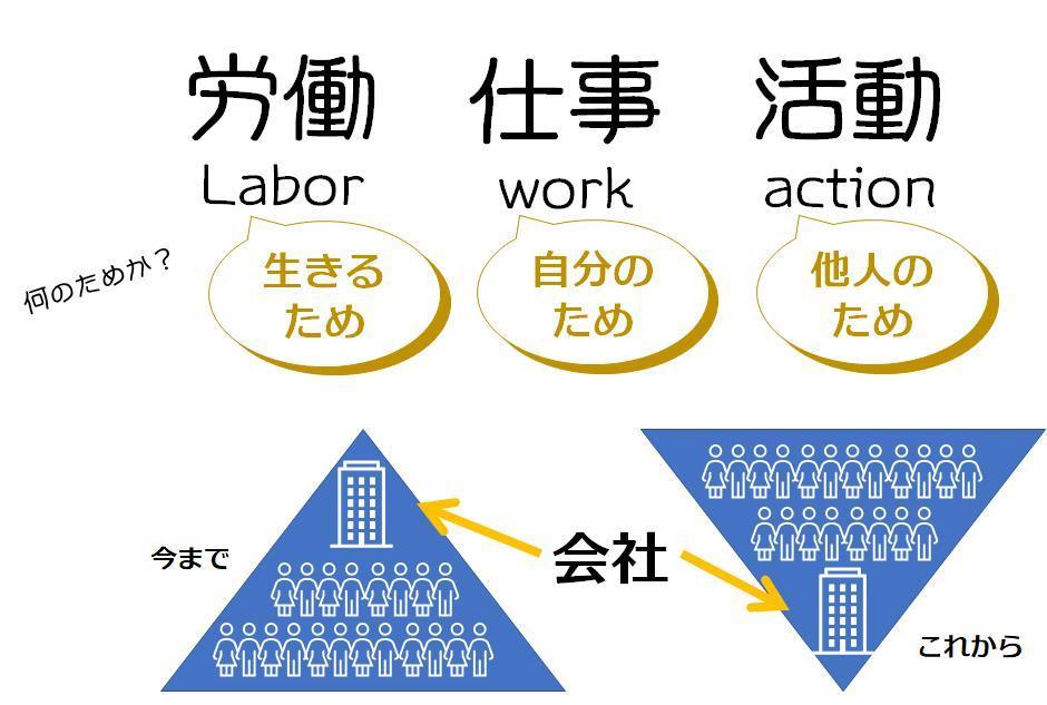 そんななかで先日仕入れたネタである。下記の労働と仕事と活動の部分は、飲み会の席で盛り上がりました。