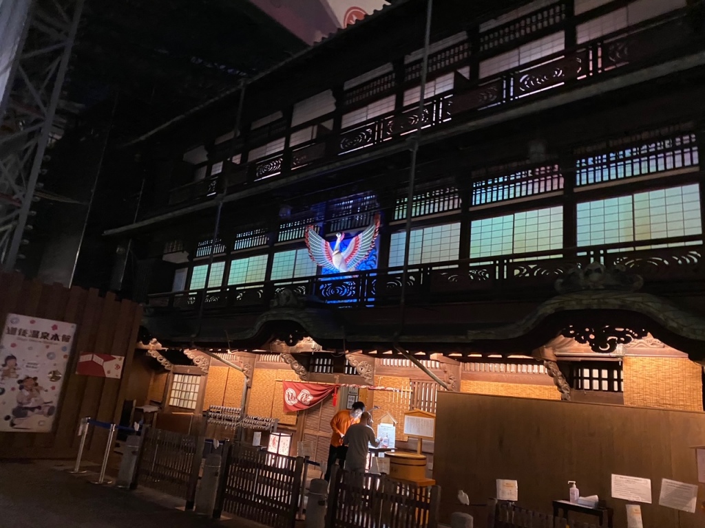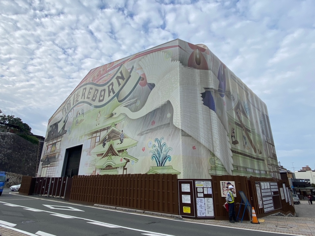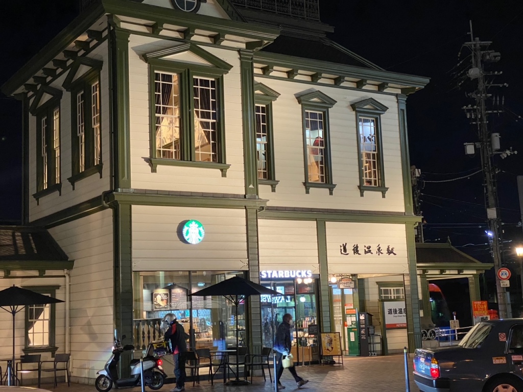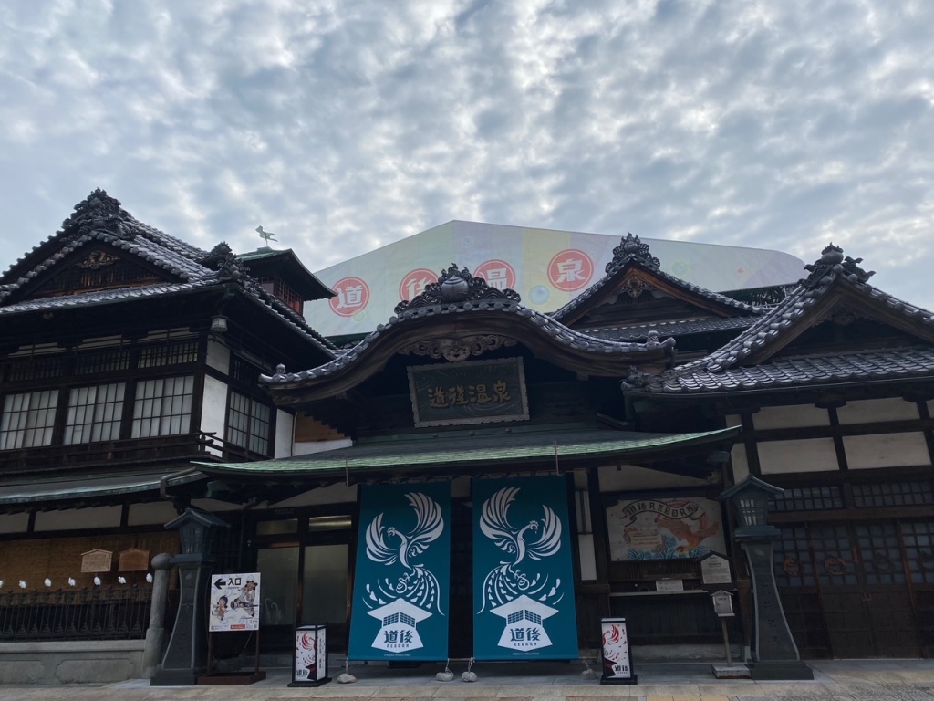 朝起きて道後温泉修復の囲いを見るとすごいです。