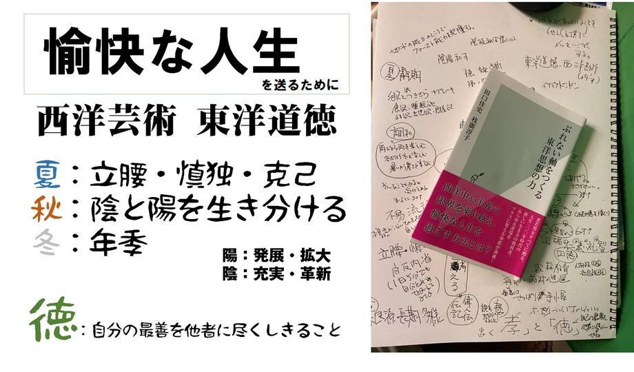 東洋は根本つまり元は何かを研究し、内側から考える。外側は内側の影響でできていると。結局は見た目が立派になるようになのは変わらないけどアプローチの違い。