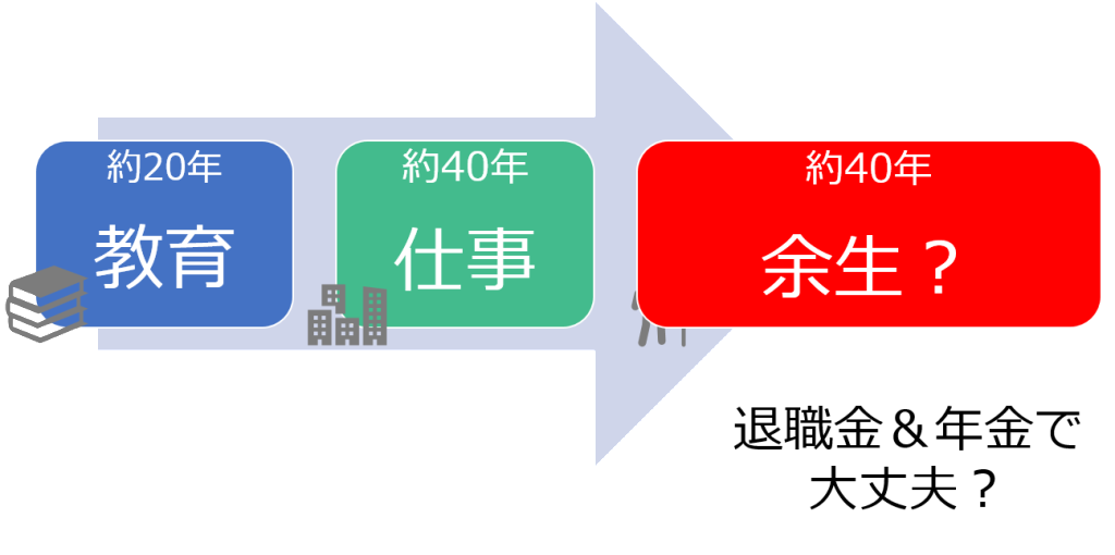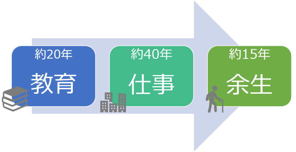 高度経済成長期から続いてきた人生のロールモデルは、大学までの約20年教育を受け、社会に出て40年勤務し、老後が15年という感じで作られてきましたとおもいますが、人生100年になると、そもそもの人生設計を考えないと先に進めないと思います。