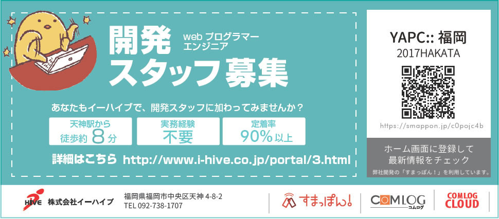 スタッフ募集!YAPC::Fukuoka 2017 HAKATA協賛です。