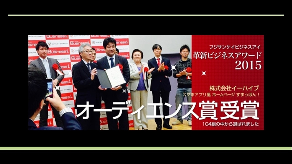 フジサンケイビジネスアイの 革新ビジネスアワード2015のオーディエンス賞を受賞しました。