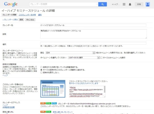 下記の画面のこのカレンダーを埋め込むの隣にある