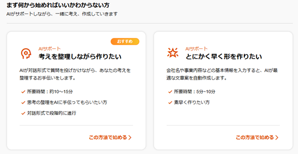 ホームページを作る前の“考える段階”からAIがサポートします。