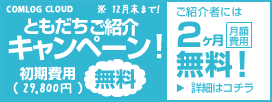 ともだち紹介キャンペーン!が始まりました! コムログクラウドという商品を公開して2年半たちました。 多くのお客様に使って頂くまで成長させていただきました。 お客様の要望にお答えできるように、 毎月セミナーをさせていただいたり、 バージョンアップをさせていただい...