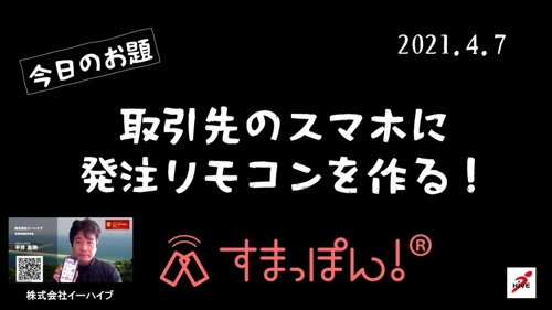いつもご覧いただきありがとうございます。イーハイブの平井です。 4月は、すまっぽん!にいろいろなクラウドを結びつけて紹介しました。 え?こんな使い方があったのって思われるかもしれません。 ■問屋・メーカーにオススメ 発注リモコンすまっぽん! https://...