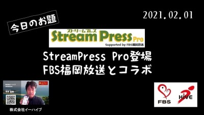 StreamPress Pro登場 FBS福岡放送とコラボを今回ニュースリリースをさせていただきました。 ニュースリリース: https://streampress.i-hive.co.jp/125269.html 画像で紹介! StreamPress P...